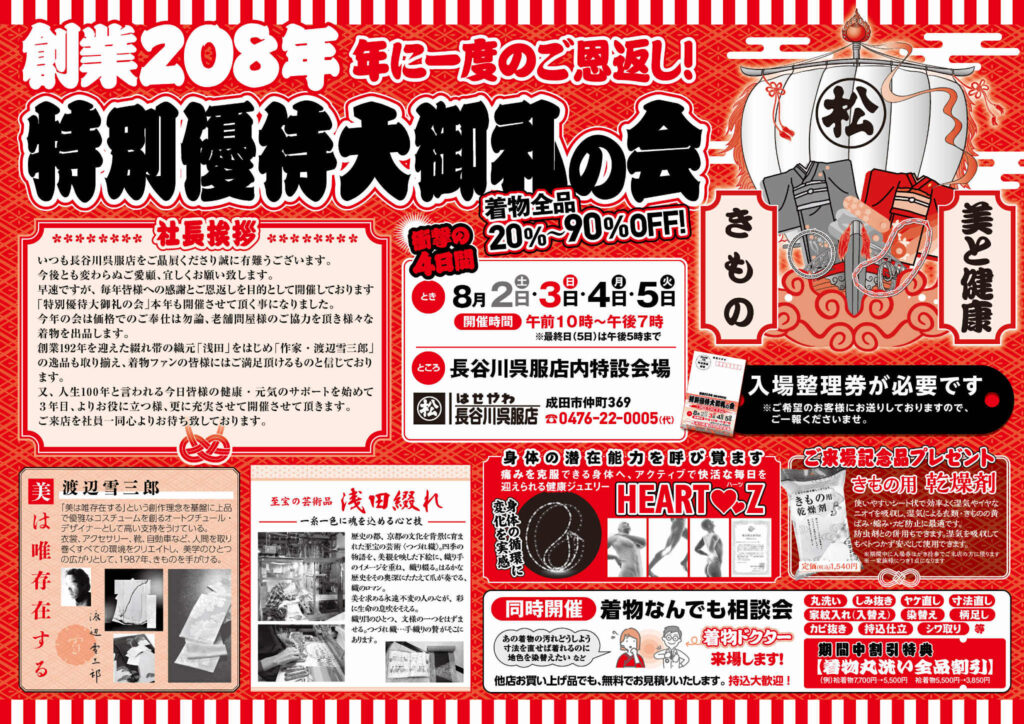 時:8月2日(土)~5日(火) 所:当店内特設会場