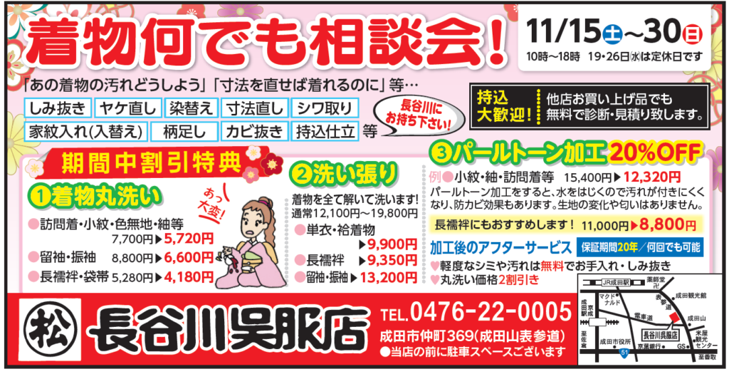 会期:11月15日(土)~30日(日) ※19日・26日(水)は定休日です。